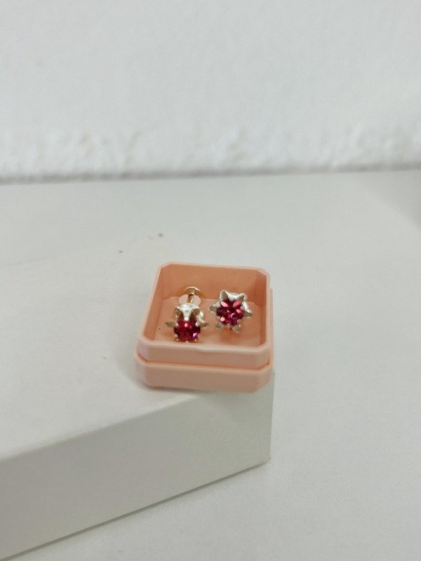 Abridores flor strass fucsia plata 925