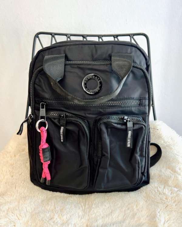 Tres bolsillos frontales con cierre, ideales para objetos pequeños.