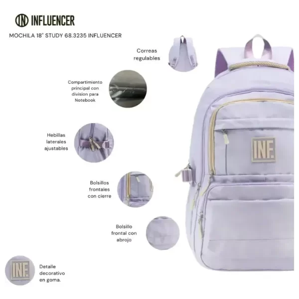 • Un compartimiento principal amplio con un espacio dedicado para notebook.