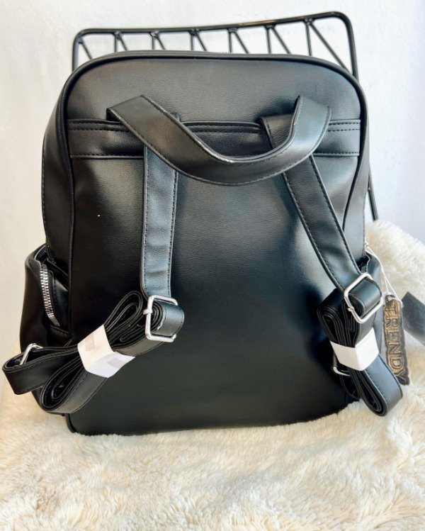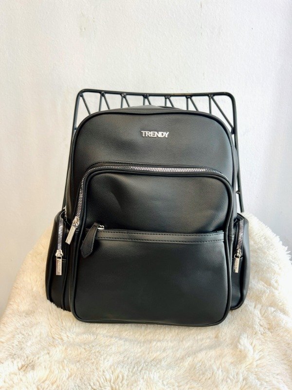 -Contiene: Un bolsillo principal con un bolsillo interno organizador y un bolsillo interno con cierre, dos bolsillos frontales, dos bolsillo laterales, un asa de transporte superior, tiras regulables.