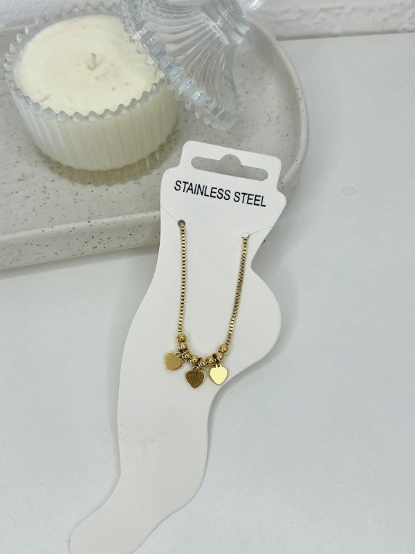 Tobillera corazon acero dorado